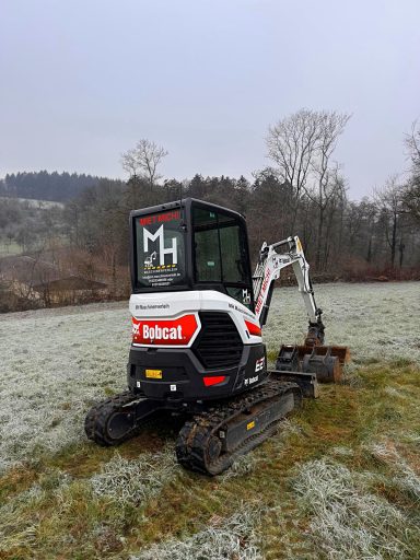 Der Tagespreis beinhaltet einen Tieflöffel, 30cm oder 50cm, sowie eine Maschinenbruchversicherung mit Selbstbeteiligung. Ein Tag beinhaltet 8 Betriebsstunden.